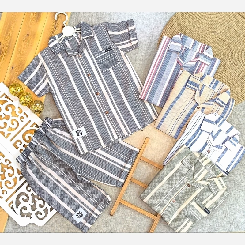ناموجودپیراهن شلوارک بچگانه پسرانه سایز50 بیسکوییتی راه راه