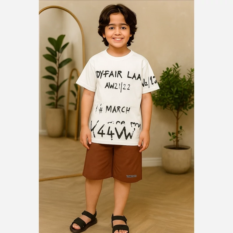 تیشرت شلوارک بچگانه پسرانه بیسکوییتی 35تا45