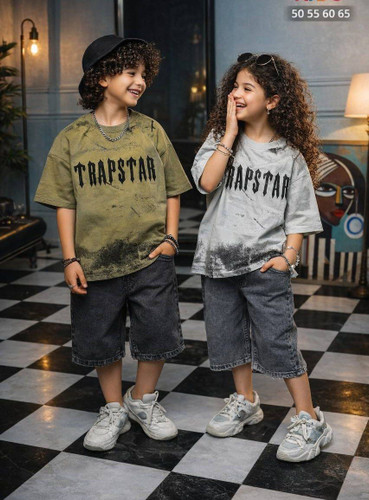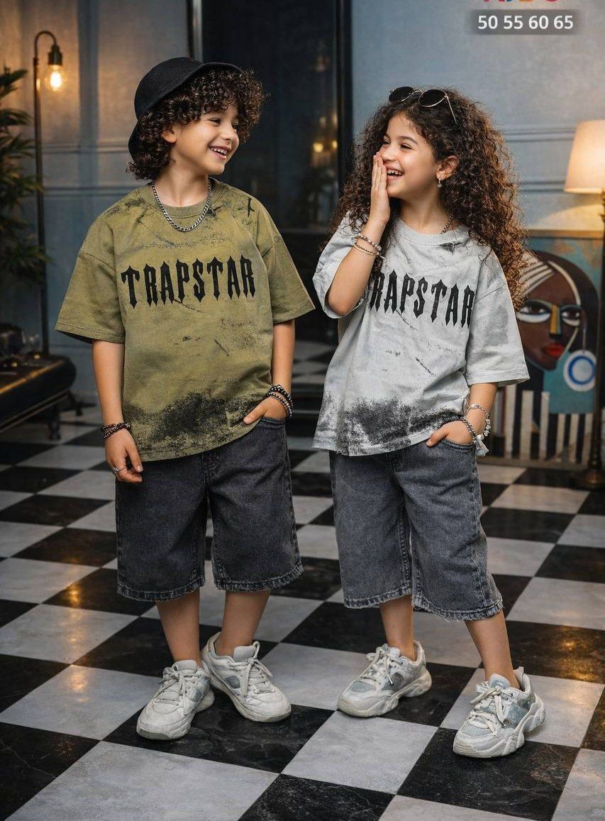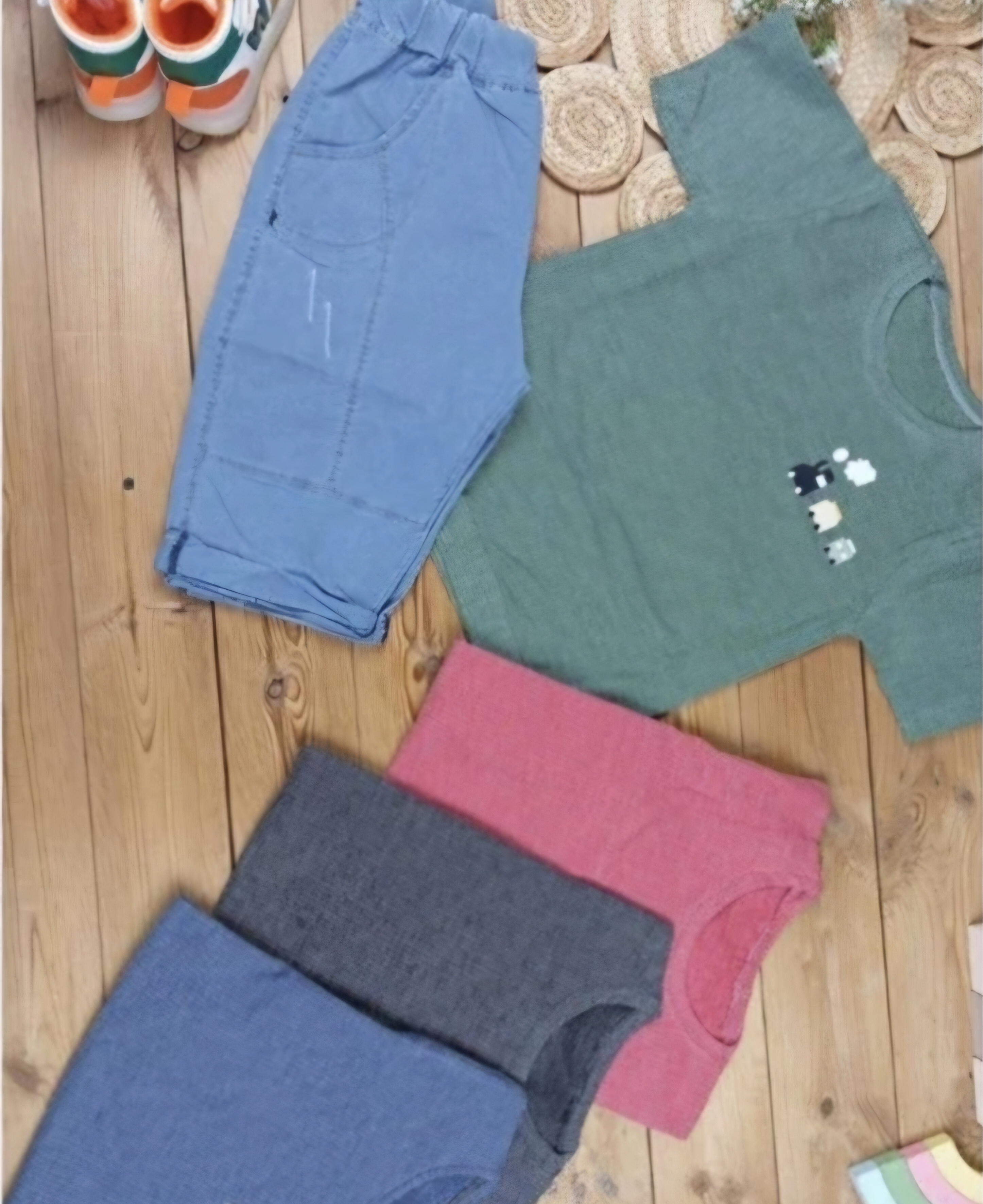 تیشرت شلوارک جین بچگانه پسرانه طرح قطار سایز40