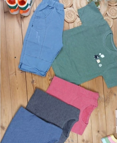 ناموجودتیشرت شلوارک بچگانه پسرانه چاپ دار پنبه و کتان سایز 55و 60
