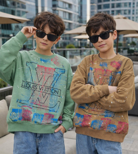 بلوز بچگانه پسرانه آستین بلند طرح LV دورس پنبه سایز 45تا65