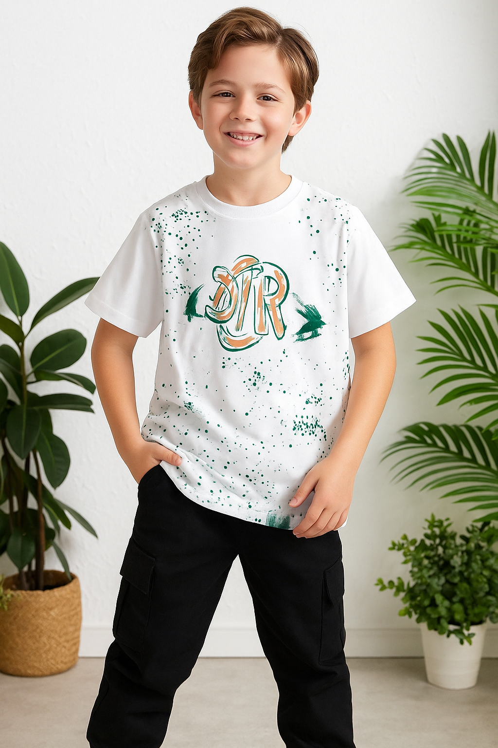بلوز دورس تک بچگانه پسرانه نوجوان پنبه طرح رنگ پاش سایز 55تا65