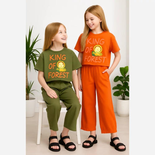 بلوز آستین کوتاه و شلوار کرومی بچگانه دخترانه فلامنت سایز35
