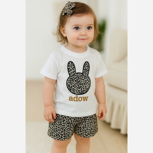 تیشرت و شلوارک پلنگی خرگوشی بچگانه دخترانه سایز35