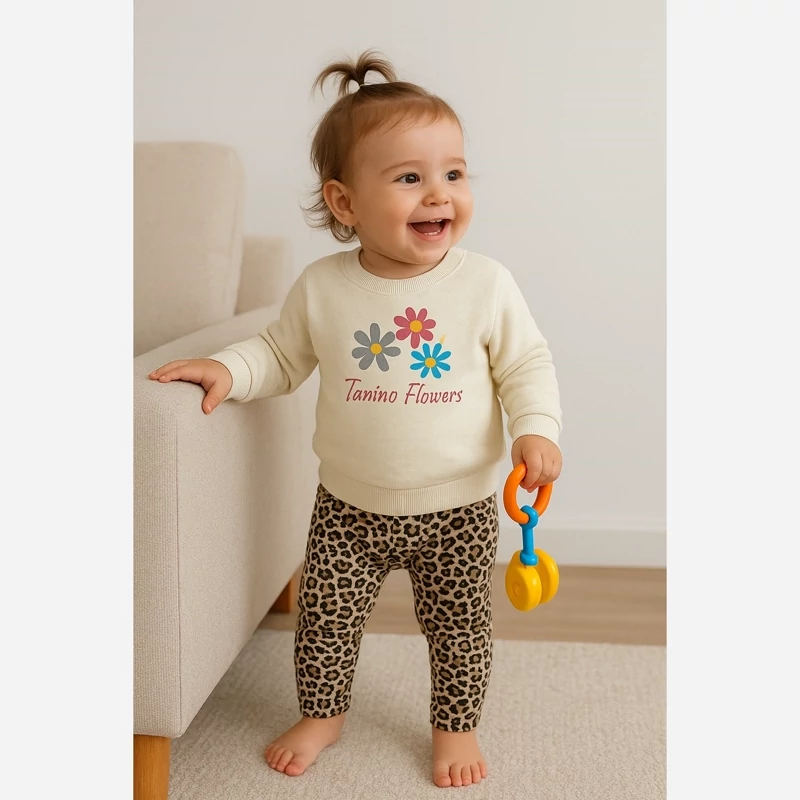 بلوز شلوار دخترانه آستین بلند طرح گل پلنگی سایز35