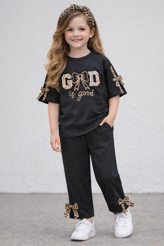 بلوز شلوار بچگانه دخترانه پاپیون پلنگی پنبه و کتان سایز40تا55