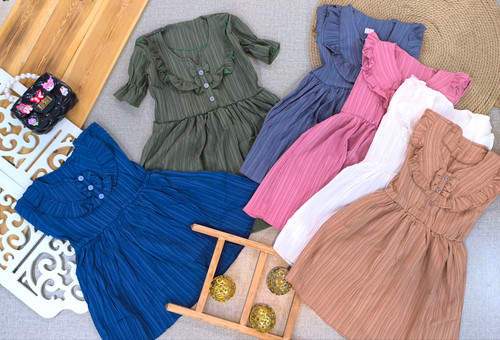 سارافون بچگانه دخترانه چین دار جنس کراش زیر 3سال