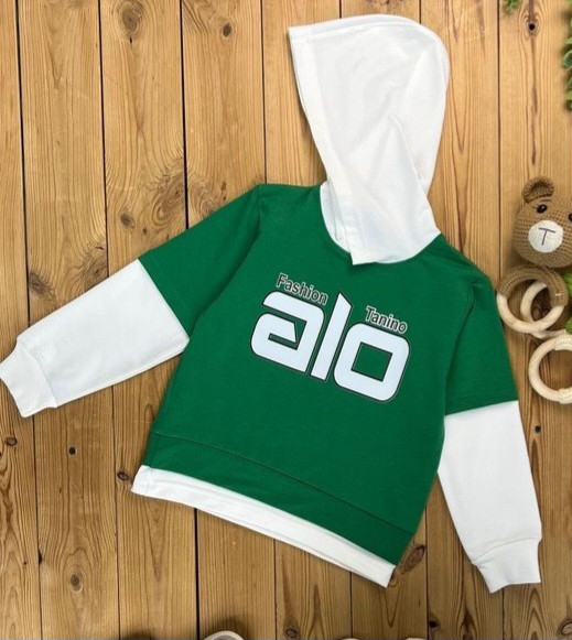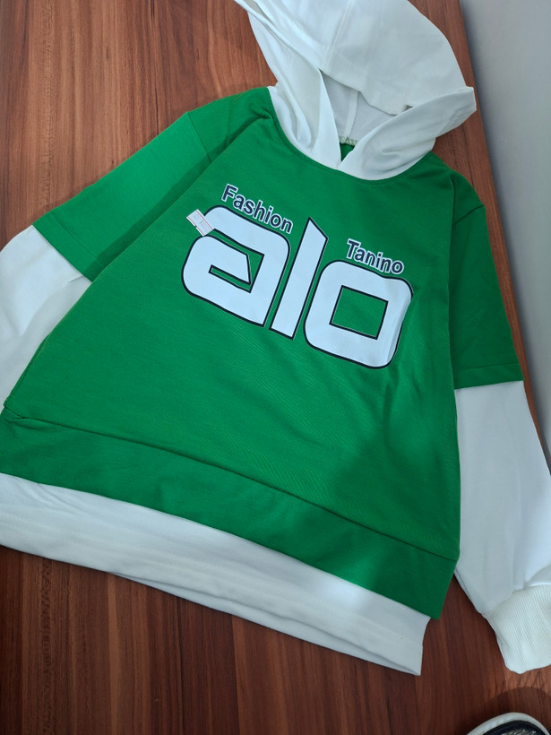 هودی تک کلاهدار بهاره اسپرت تک رنگ سبز تکه دوزی سفید