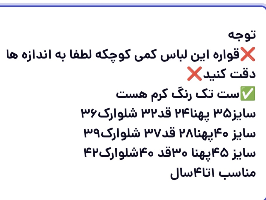 ❌️قواره این لباس کمی کوچکه لطفا به اندازه ها دقت کنید❌️