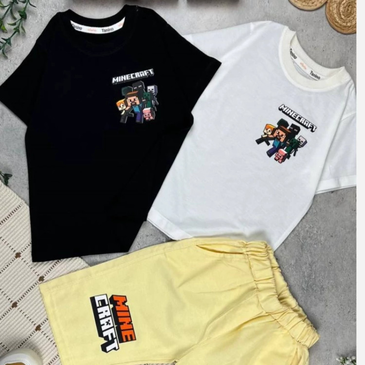 ست تیشرت و شلوارک پسرانه طرح ماینکرافت 😍 🌈سفر به دنیای رنگارنگ کودکان با نی نی کیوت🌈